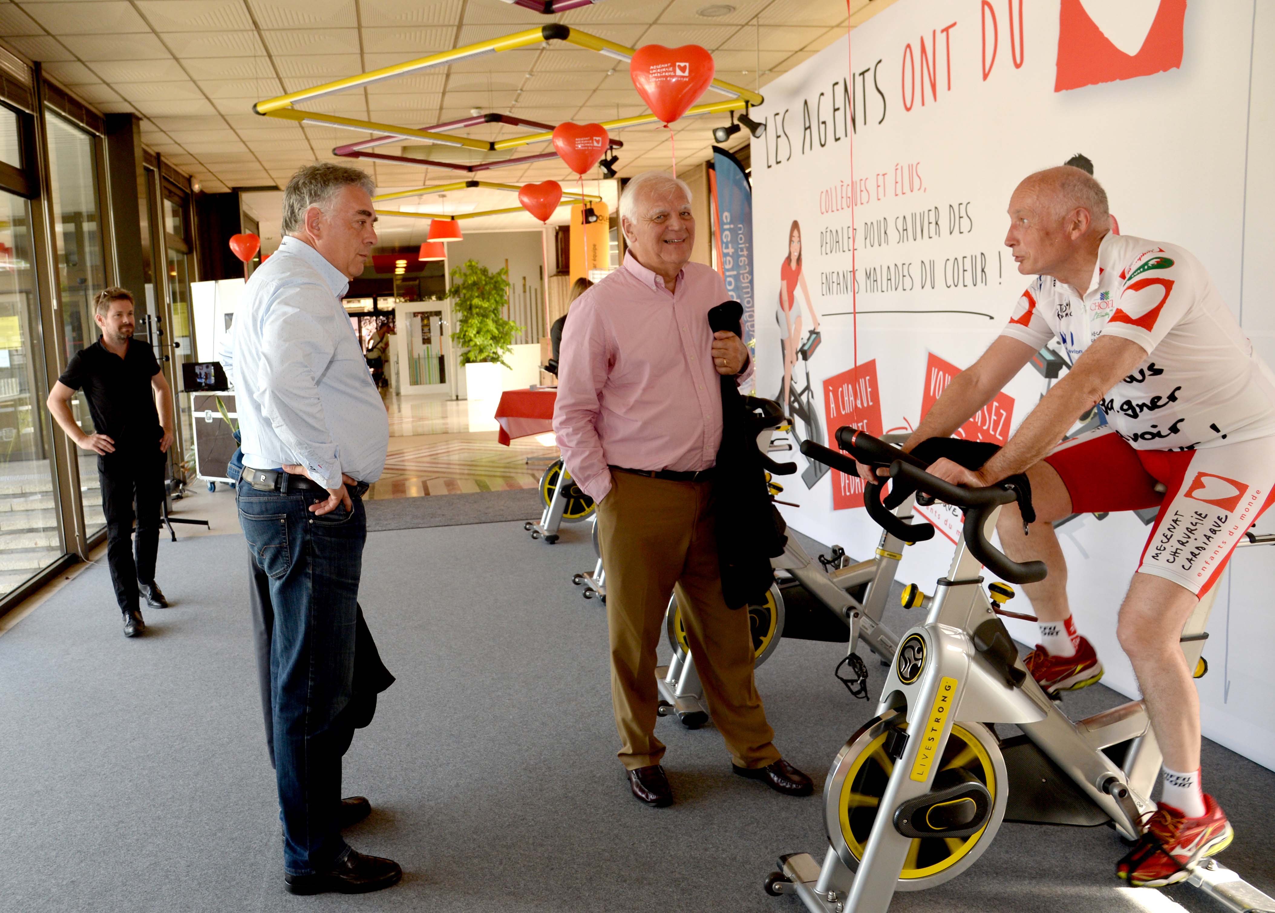 Très heureux de pédaler pour Mécénat Chirurgie Cardiaque – Action organisée par le CMJ dans le cadre du Tour de France. Avec Isabelle Leroy, Patrice Brault et John Davis.