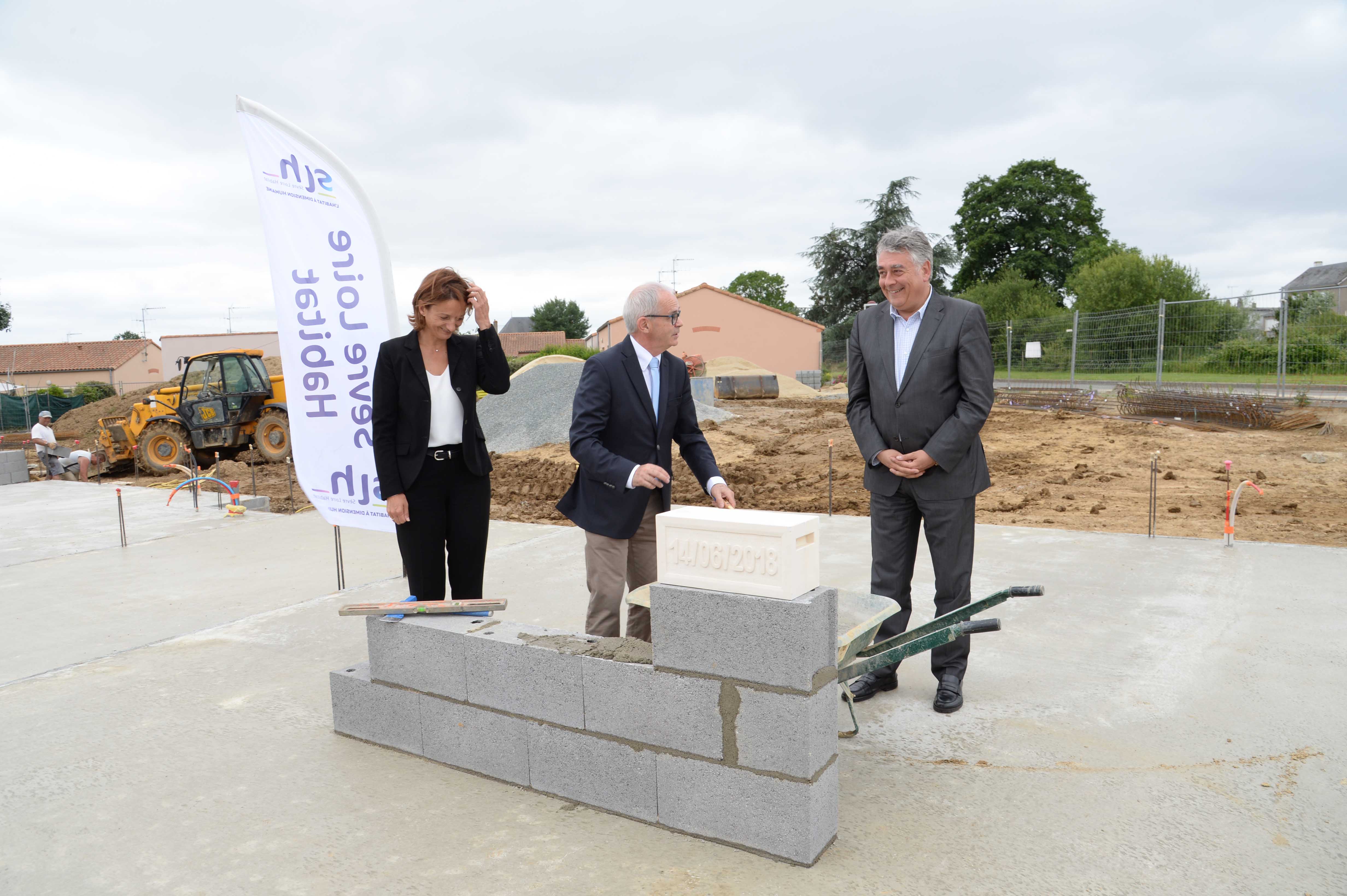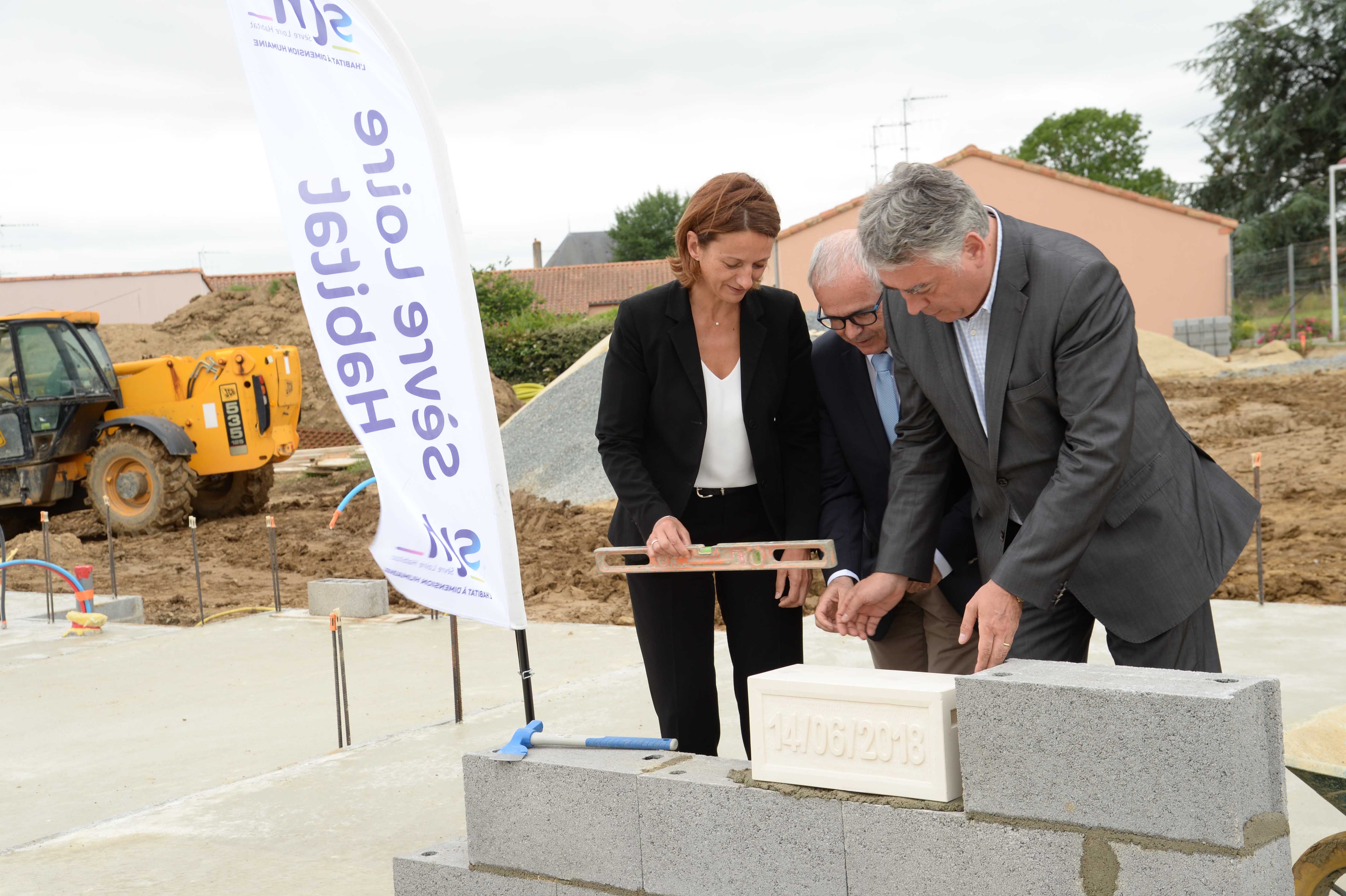Avec Isabelle Leroy, nous avons posé la 1ère pierre de huit nouveaux logements du bailleur social #SèvreLoireHabitat – Les Bretonnais – à Bégrolles en Mauges. #cohésionsociale