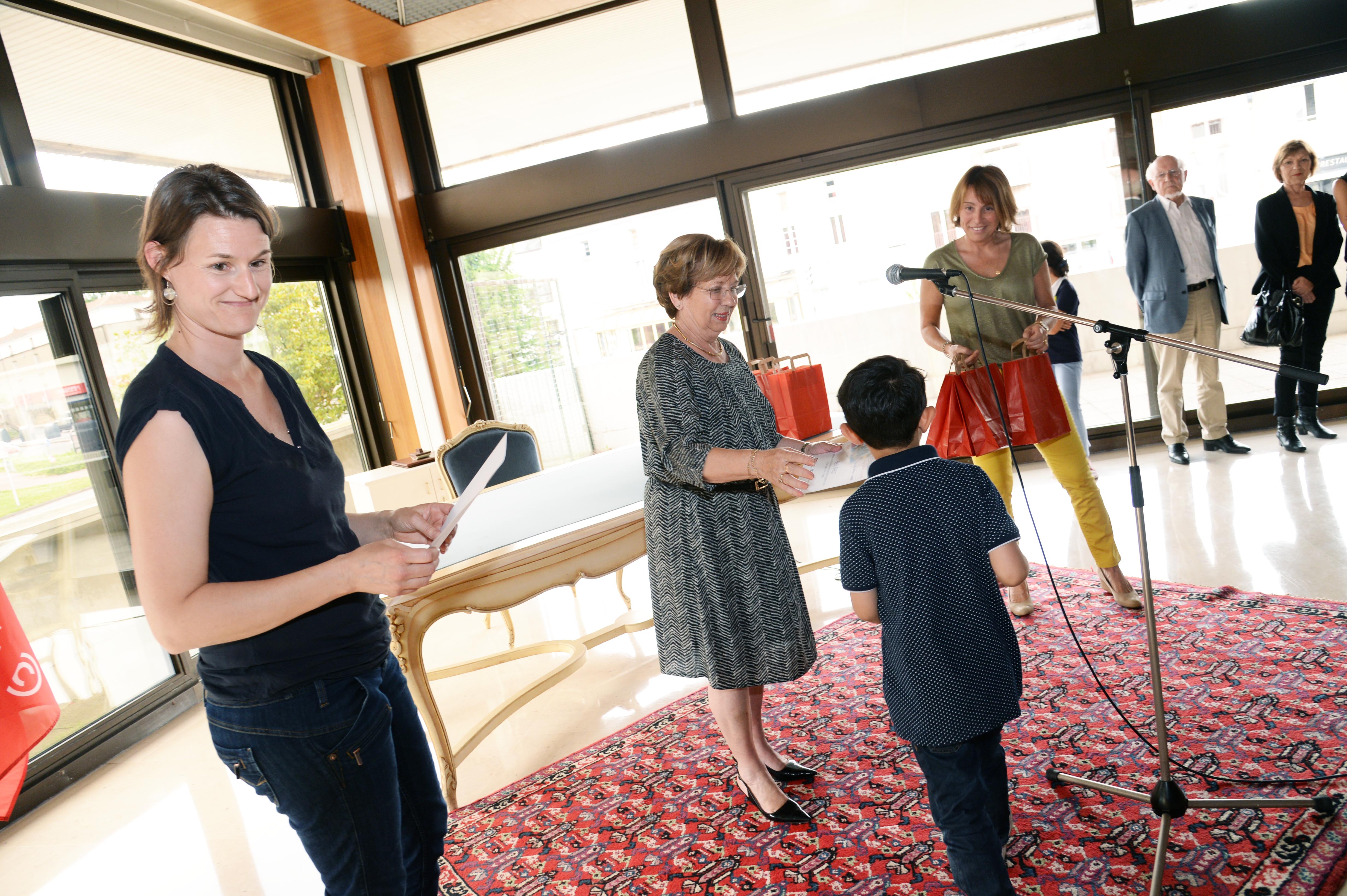 Cérémonie de remise des trophées scolaires avec J. Davis et M. Champion.